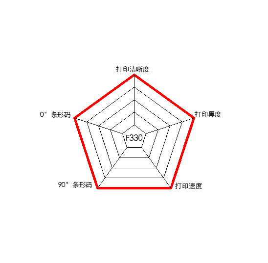 F330是整个水洗碳带领域清晰度最高的产品之一,适合旋转90°条码等复杂信息的精细打印;